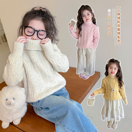 宝*嘎下载“一体绒彩点高领麻花毛衣0846然然”图片包